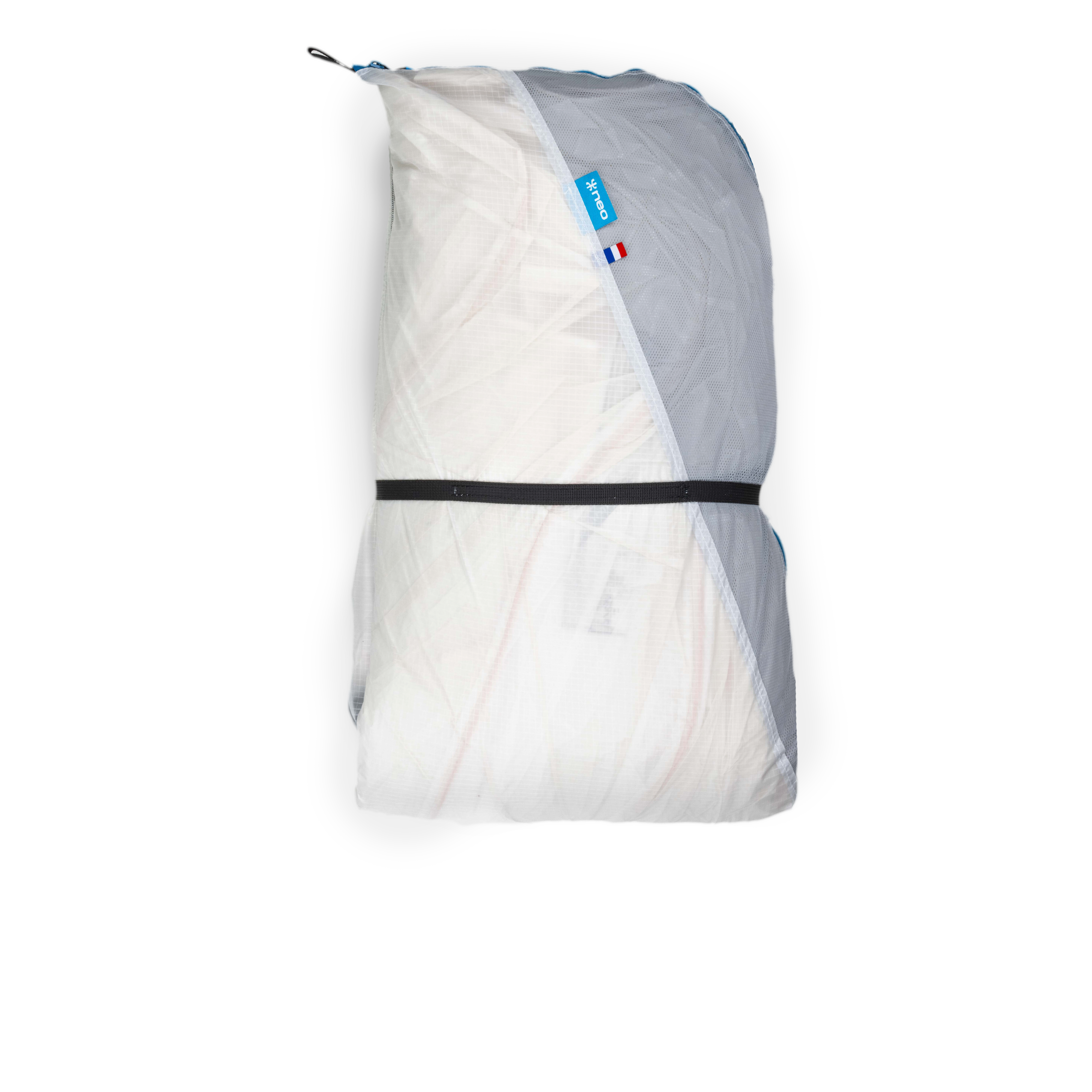 To protect your wing from the perspiration on your back during hike & fly activities. Perspiration can be harmful to your wing fabric. To protect it, a waterproof fabric panel has been integrated into the NEO Easypack Waterproof. This waterproof ripstop fabric is specially developed by NEO and has a waterproof column rating of 2,000 mm. And the waterproof fabric panel will deliver the same protection from perspiration whether you fold your wing into 3 or 4 sections.