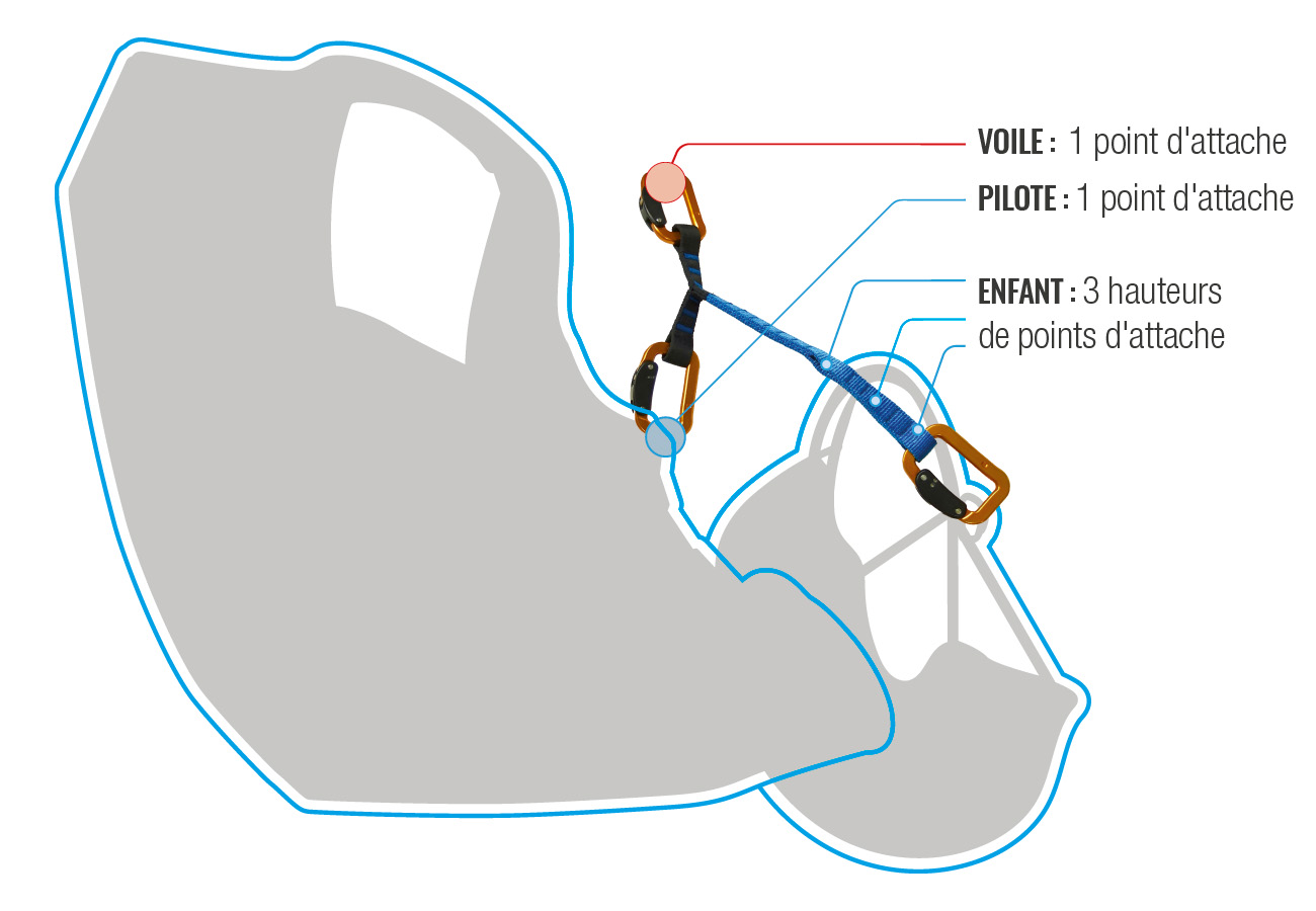 Designed to optimise pilot/passenger position when flying with kids : for your child’s first flights, the Kids Tandem Spreaders offer 3 hang point levels. Easy to handle and extra strong, the spreaders allow the pilot and passenger to fly with comfort, at the correct height and with perfect visibility. The pilot/passenger couple is a compact load and the pilot remains close to the wing: making the glider nice and precise to pilot. NEO Tandem Spreaders for kids are the perfect accessory to fly with the younger generation!